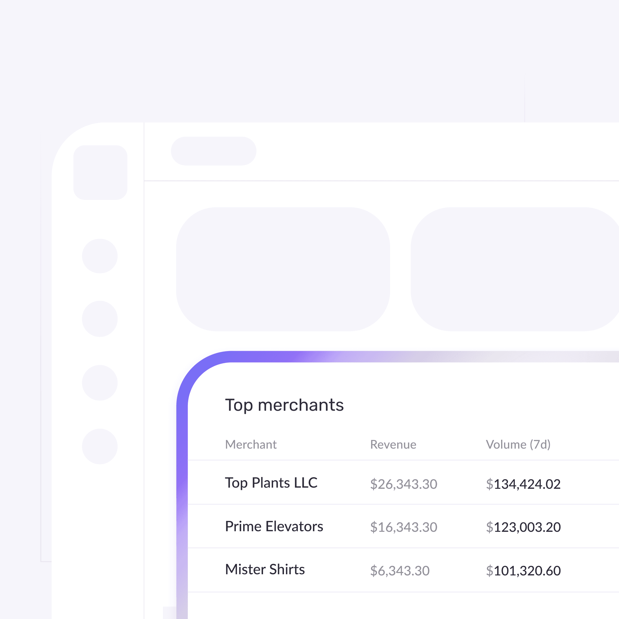 Real-time visibility into merchant performance, transaction volume, and your revenue share